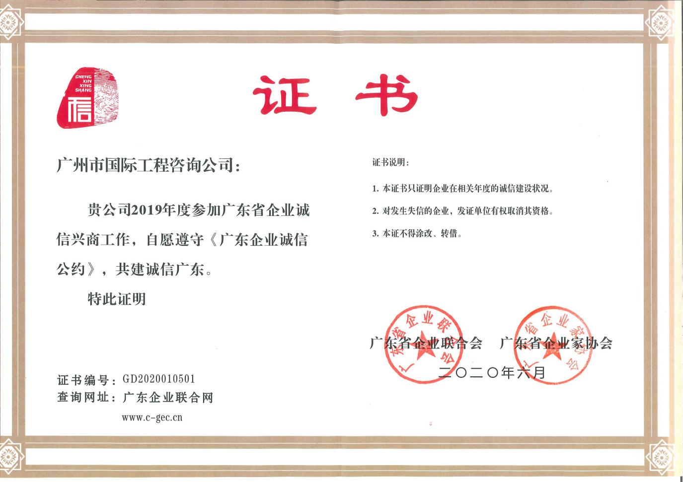 2019年廣東省企業(yè)誠(chéng)信公約