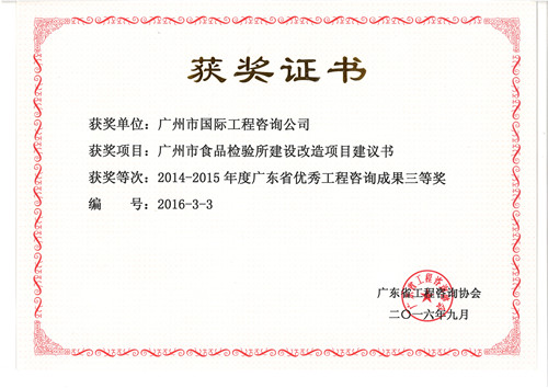 《廣州市食品檢驗(yàn)所建設(shè)改造項(xiàng)目建議書》獲2014...