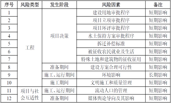 根據(jù)《社穩(wěn)分析報(bào)告》的結(jié)論,該項(xiàng)目主要風(fēng)險(xiǎn)因素為工程風(fēng)險(xiǎn)和項(xiàng)目與社會互適性等方面,實(shí)施風(fēng)險(xiǎn)防范和化解措施后,該項(xiàng)目的風(fēng)險(xiǎn)等級為低風(fēng)險(xiǎn)。該項(xiàng)目主要風(fēng)險(xiǎn)因素具體如下: