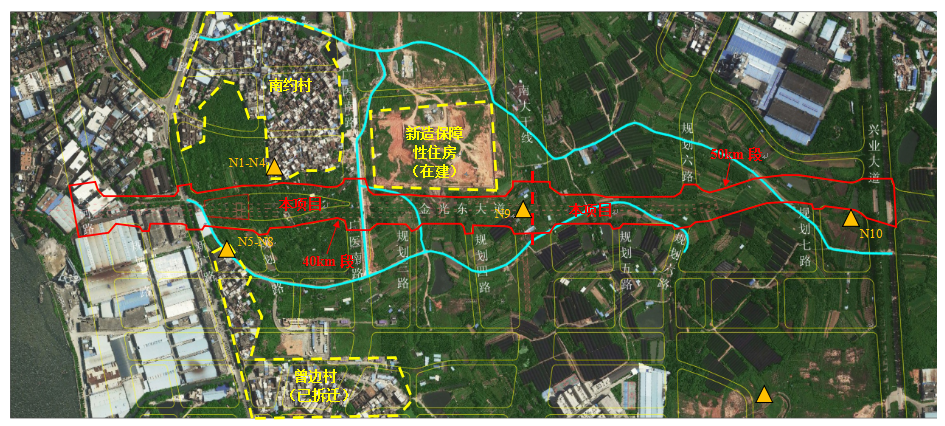 道路設(shè)計(jì)全長約1.82km。道路規(guī)劃為城市主干路,設(shè)計(jì)車速40、50km/h。由于保護(hù)古樹需要,濱河路至南大干線分離作東線道路與西線道路,南大干線至興業(yè)大道為一體式路基。主線道路規(guī)劃紅線標(biāo)準(zhǔn)段寬度為60m;分離式道路路段東線規(guī)劃寬度19米,西線為21米。行車道路面結(jié)構(gòu)類型采用瀝青混凝土路面。項(xiàng)目設(shè)計(jì)內(nèi)容主要是道路設(shè)計(jì)范圍內(nèi)的路基工程、路面工程、人行道、交通標(biāo)線和標(biāo)志、雨污水工程、橋梁工程、景觀綠化、照明工程等。根據(jù)道路建設(shè)需要,征收土地面積109255.26平方米。