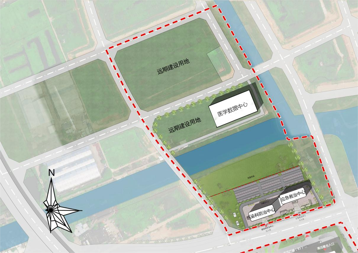 本項目的建設(shè)內(nèi)容主要為在現(xiàn)有南沙院區(qū)北側(cè)新增地塊內(nèi)新建醫(yī)學(xué)數(shù)據(jù)中心以及公共衛(wèi)生中心,醫(yī)學(xué)數(shù)據(jù)中心建設(shè)內(nèi)容包括數(shù)據(jù)中心主機房、輔助區(qū)和支持區(qū)、管理及業(yè)務(wù)、數(shù)據(jù)中心科研等用房及配套設(shè)施;公共衛(wèi)生中心建設(shè)內(nèi)容包括門急診、醫(yī)技、住院等用房及配套設(shè)施。項目新建總建筑面積為64370㎡,其中醫(yī)學(xué)數(shù)據(jù)中心建筑面積為40000㎡,公共衛(wèi)生中心建筑面積為24370㎡,床位200床(包括重大疫情及生物安全事件病房、核輻射化學(xué)中毒、燒傷爆炸綜合救治病房、應(yīng)急分類及綜合處置(群體性創(chuàng)傷)病房)。項目總平面布置見圖1。