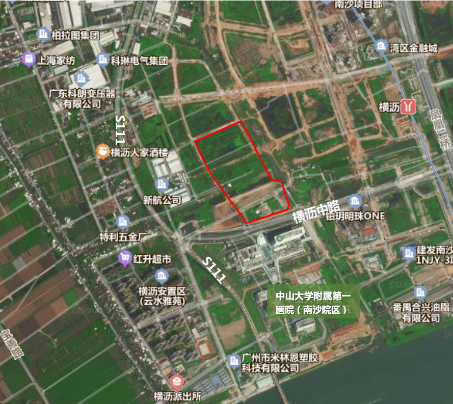 本項目建設(shè)地點位于廣州市南沙區(qū)橫瀝鎮(zhèn)明珠灣區(qū)起步區(qū)橫瀝島西側(cè),中山大學(xué)附屬第一醫(yī)院(南沙院區(qū))北側(cè)新增地塊內(nèi)。地塊東側(cè)為三多涌,南側(cè)隔橫瀝中路為南沙院區(qū),西側(cè)為橫瀝世紀(jì)工業(yè)園,北側(cè)為規(guī)劃路。具體位置見圖2。