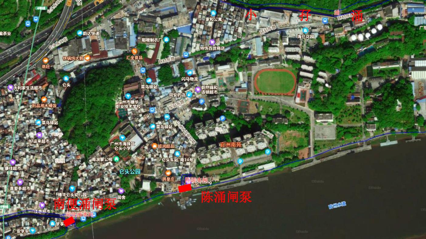 3、建設(shè)地點(diǎn)與范圍:陳涌閘泵工程位于海珠區(qū)侖頭村陳涌,屬共和圍水片區(qū),共和圍范圍北至黃埔涌,南至珠江后航道,西至赤沙涌,東至侖頭海,圍內(nèi)面積約為 8.60k ㎡。項(xiàng)目地理位置詳見下圖: