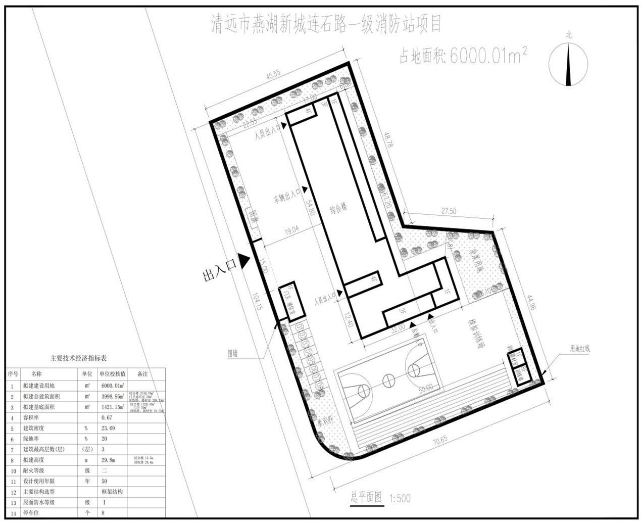 本項(xiàng)目為一級(jí)消防站建設(shè)項(xiàng)目,占地面積5600㎡,建筑面積3998.95㎡,主要建設(shè)內(nèi)容為:消防站綜合樓、訓(xùn)練塔及器材室、門衛(wèi)通信室各1棟及相關(guān)的配套設(shè)施。