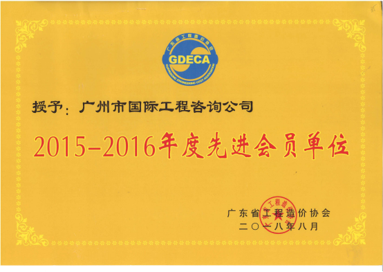 經(jīng)企業(yè)申報(bào),廣東省工程造價(jià)協(xié)會(huì)組織評(píng)選委員會(huì)進(jìn)行多輪評(píng)審,并于7月30日-8月13日在協(xié)會(huì)網(wǎng)站上對(duì)本次獲獎(jiǎng)項(xiàng)目進(jìn)行了公示,廣州市國(guó)際工程咨詢公司獲得了2017年度廣東省工程造價(jià)優(yōu)秀成果獎(jiǎng)、廣東省工程造價(jià)協(xié)會(huì)2015-2016年度先進(jìn)會(huì)員單位、優(yōu)秀造價(jià)工程師以及優(yōu)秀造價(jià)專業(yè)人員等多個(gè)獎(jiǎng)項(xiàng)。