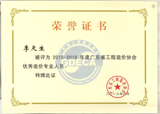 圖7:廣東省優(yōu)秀造價(jià)專業(yè)人員——李天生