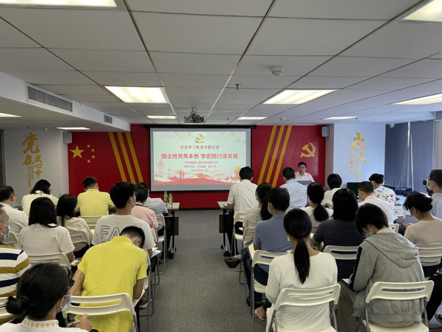 根據(jù)市委黨史學(xué)習(xí)教育領(lǐng)導(dǎo)小組及廣州國發(fā)黨委部署要求,廣州市國際工程咨詢有限公司黨委于8月12日組織召開黨委理論學(xué)習(xí)中心組學(xué)習(xí)會暨《國企姓黨亮本色 學(xué)史踐行謀發(fā)展》黨史專題黨課,市委黨史學(xué)習(xí)教育第9巡回指導(dǎo)組組員陳佳強同志列席指導(dǎo),公司黨員及非黨員中層干部共38人參加了會議。